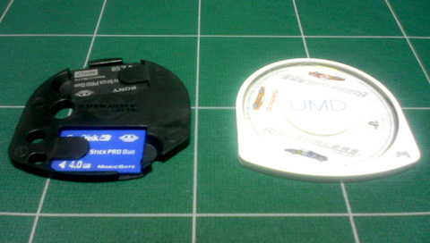 ↓メモステ装着した感じとUMDとの比較。