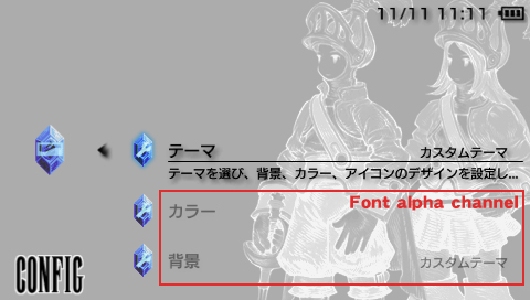 設定メニュー非選択項目αチャンネル
